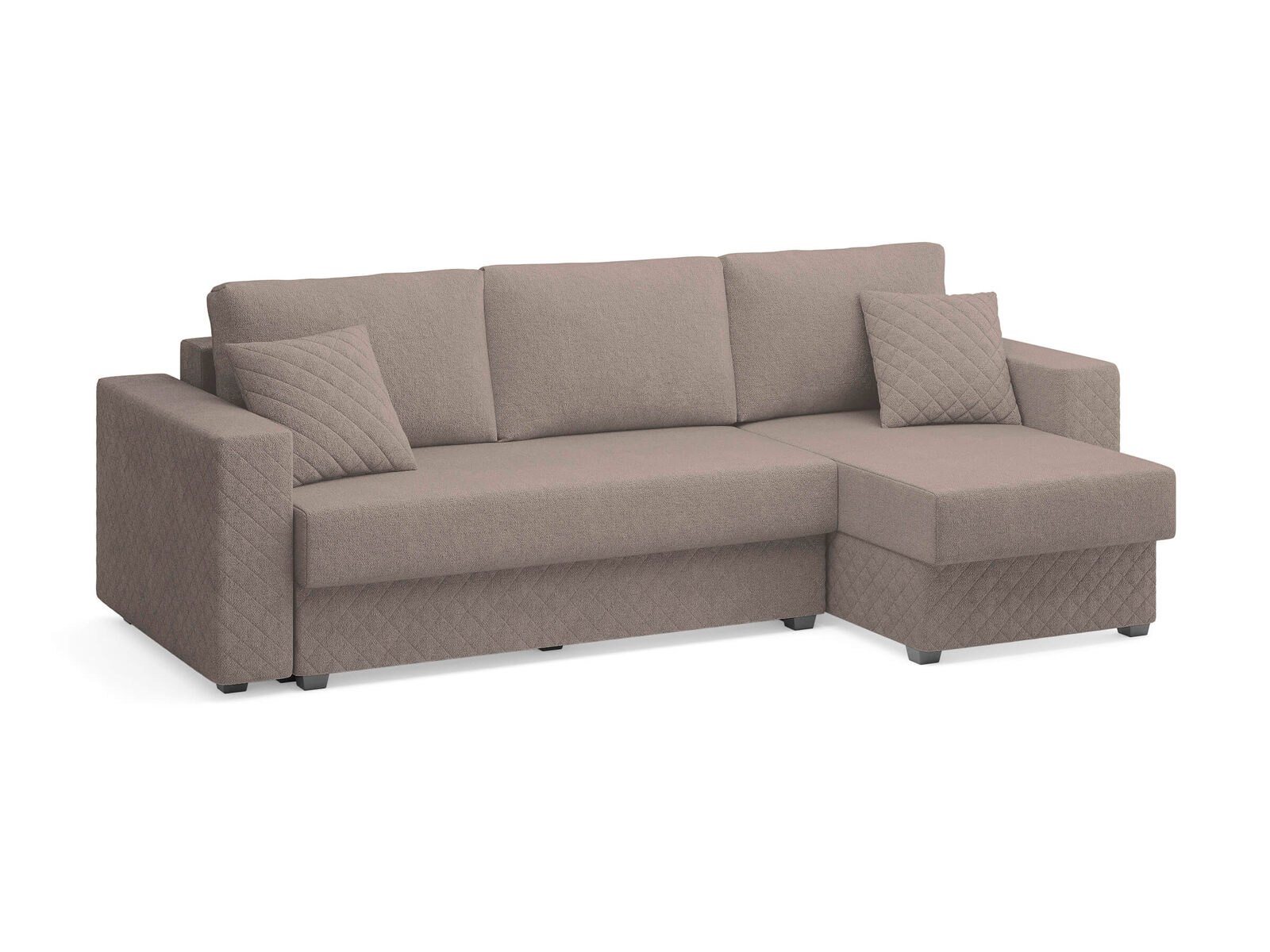 Диван оснащён современным механизмом трансформации пантограф, который обеспечивает лёгкость и удобство в использовании. В его основе лежит ортопедический матрас с независимым пружинным блоком, что гарантирует комфортный отдых и здоровый сон. Удобная глубина и высота сидения способствуют повседневному комфорту, позволяя расслабиться после долгого дня. Декоративная стёжка на подлокотниках и цоколе подчёркивает строгие, геометрические формы дивана, придавая ему стильный и современный вид. Задняя спинка дивана защищает от прикосновения со стеной во время сна, а также предотвращает возможные повреждения и загрязнения стен. В угловой секции (оттоманка) предусмотрено удобное место для хранения, что позволяет рационально использовать пространство. В комплект дивана входят две стёганные декоративные подушки, которые дополняют его внешний вид и обеспечивают комфорт. При сборке вы можете самостоятельно выбрать, с какой стороны будет расположен угол — справа или слева.