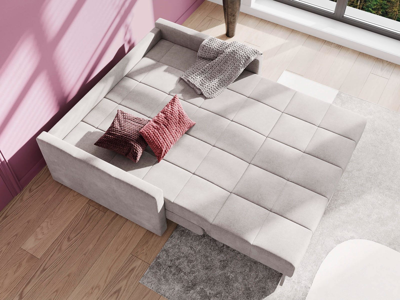 Диван-кровать Rest для сна в современном стиле, с механизмом трансформации аккордеон и коробом для хранения. Металлический каркас с деревянными ламелями обеспечивает ровную поверхность, как на кровати. Матрас анатомический с независимым пружинным блоком. Благодаря чехлу с объемной стежкой в форме квадратов, диван органично впишется в современные интерьеры и интерьеры в стиле минимализм. Лаконичные подлокотники и механизм разложения обеспечивают дивану минимальные габариты в ширину как в сложенном, так и разложенном виде. Диван Rest оборудован вместительным коробом для хранения постельного белья или аксессуаров для сна. Rest имеет 2 положения трансформации - диван с комфортной посадкой и кровать с полноценным анатомическим матрасом.