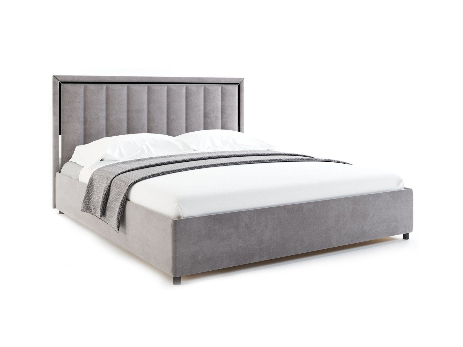 Вивальди — изящная кровать в современном стиле. Изюминка модели — высокое мягкое изголовье с вертикальными стяжками и зеркальной вставкой по периметру, которая создает яркие блики на свету.