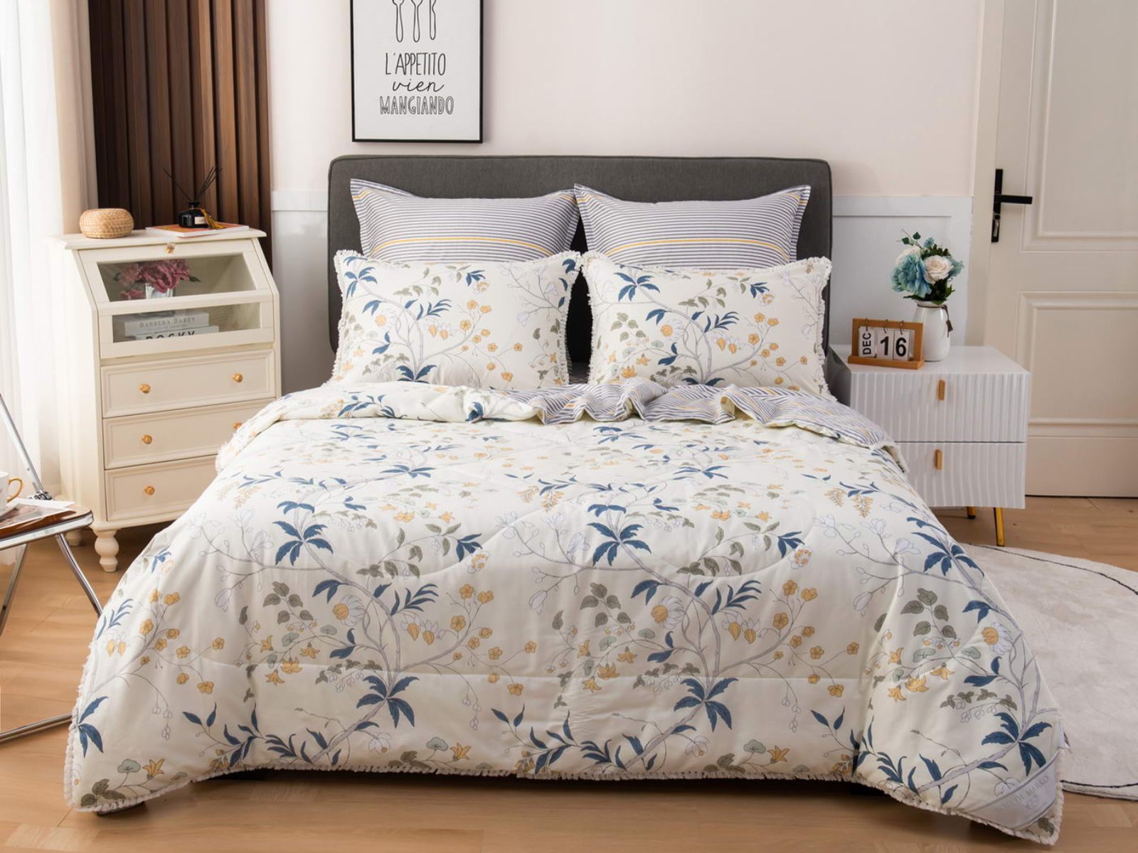 В комплекты комфортеров с одеялом Бернадетт входят наволочки, простыня и легкое всесезонное одеяло. Оцените это современное и очень удобное решение, которое идеально подходит тем, кто не любит возиться с пододеяльниками.