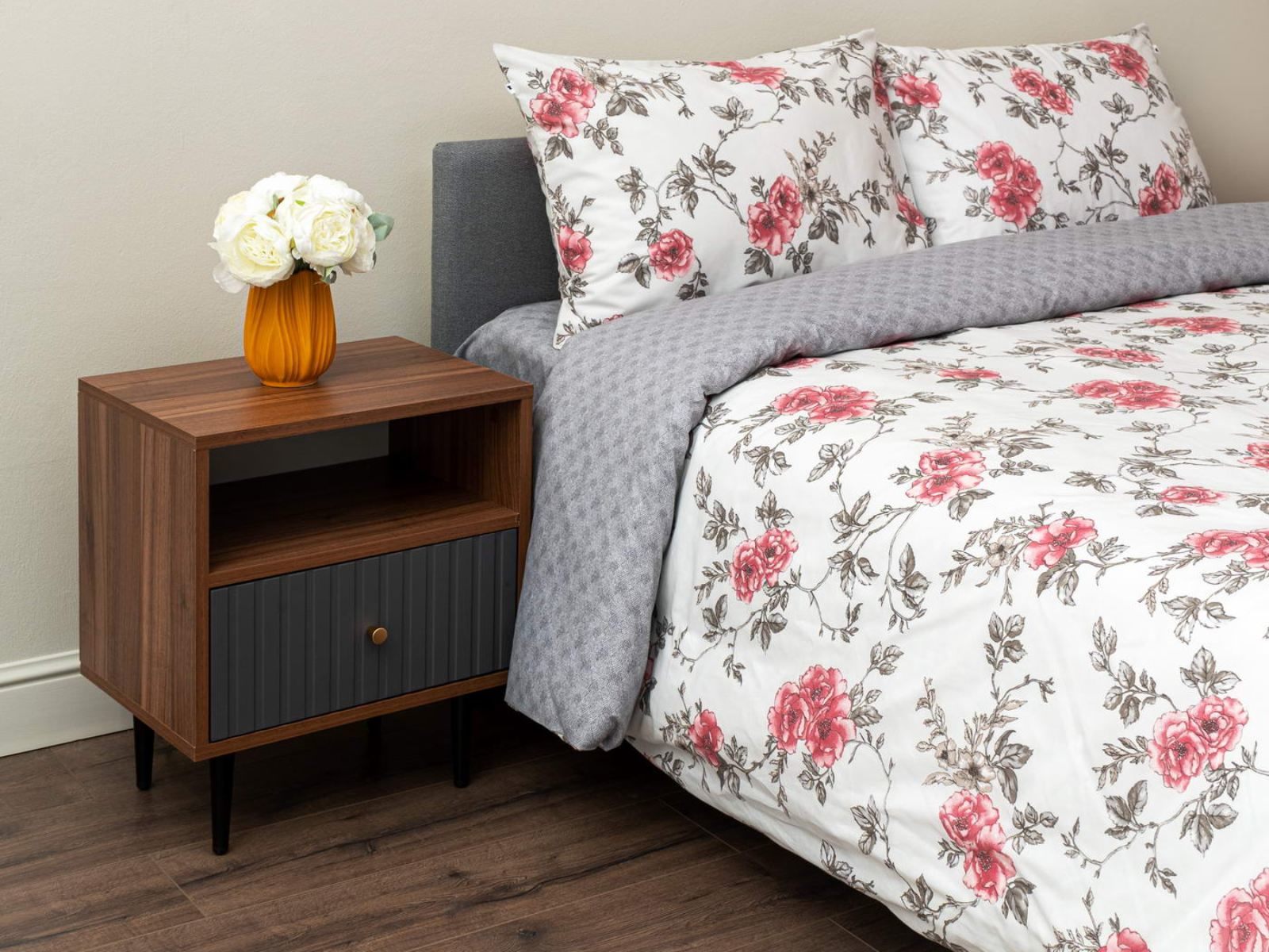 Комплект изготовлен из ранфорса, такая ткань отвечает всем современным стандартам и по уровню комфорта не уступает сатину. Ранфорс долговечен, лёгок и приятен на ощупь.