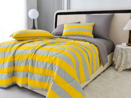 В комплект входит легкое, мягкое, летнее одеяло. Его можно стирать вместе с другим бельем, оно быстро сохнет и после стирки его не нужно гладить.