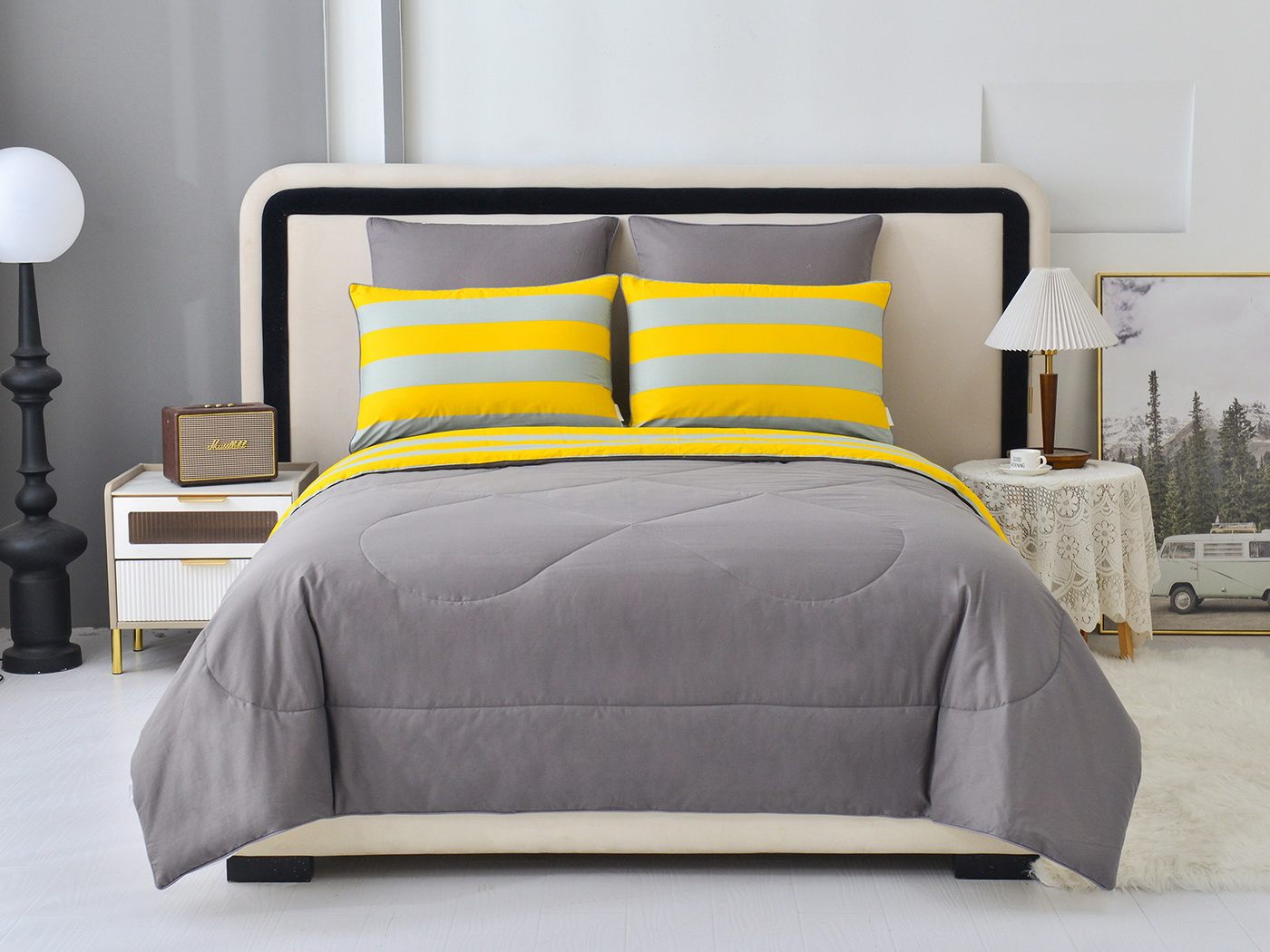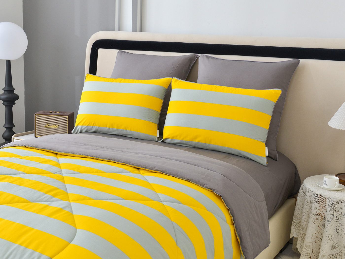 Особенность: двусторонняя модель, наволочки и одеяла декорированы кантом.
