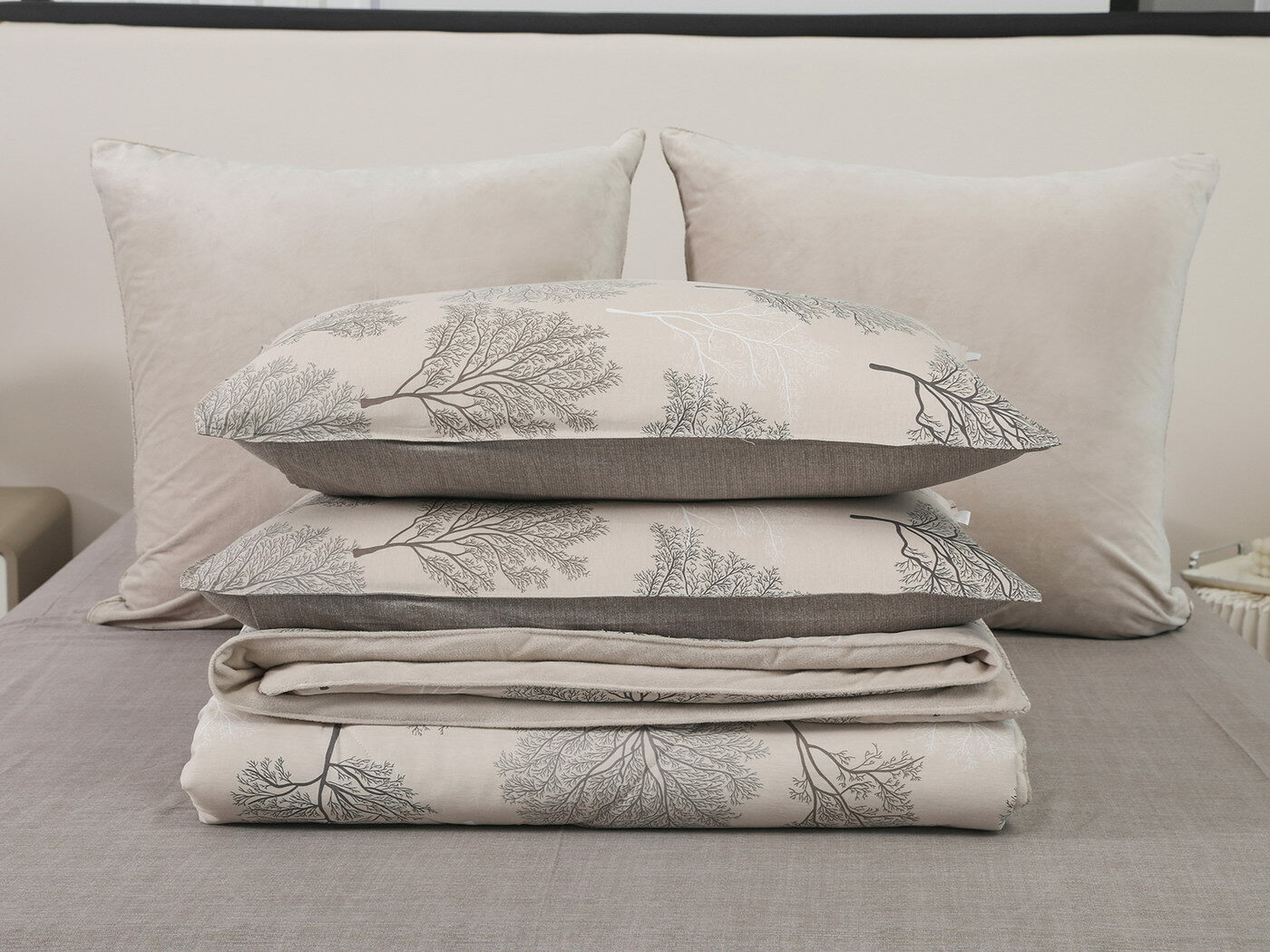 Новая коллекция комплектов «Роберто» с одеялом из однотонного велюра и принтованного сатина.