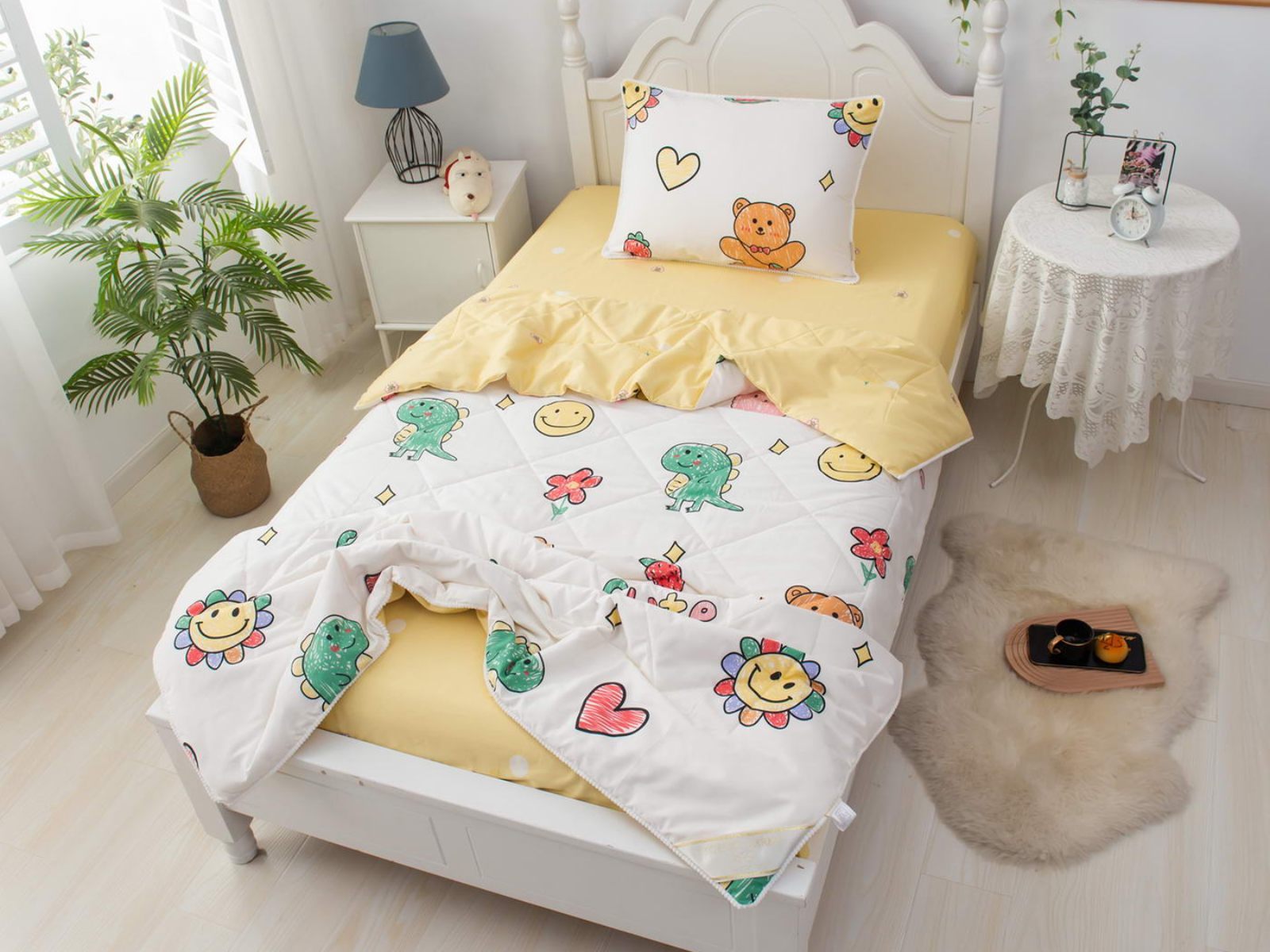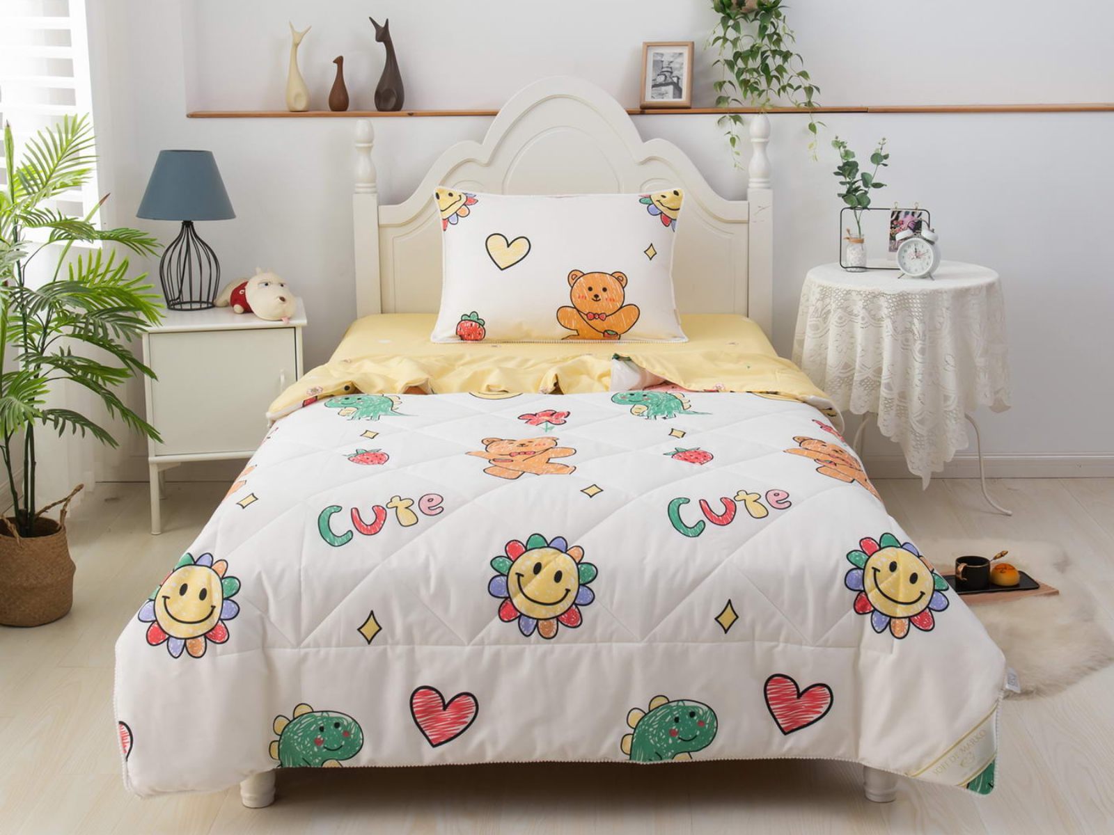 Само одеяло тонкое и легкое, но под ним ребенку не будет холодно зимой или жарко летом. Такое одеяло можно использовать в любое время года, 100% хлопок гарантирует качественный сон, т.к. натуральная ткань хорошо впитывает влагу и позволяет коже дышать. Натуральные материалы не вызывают аллергии. Огромная палитра оттенков и яркие дизайны комплектов понравятся детям и подросткам.