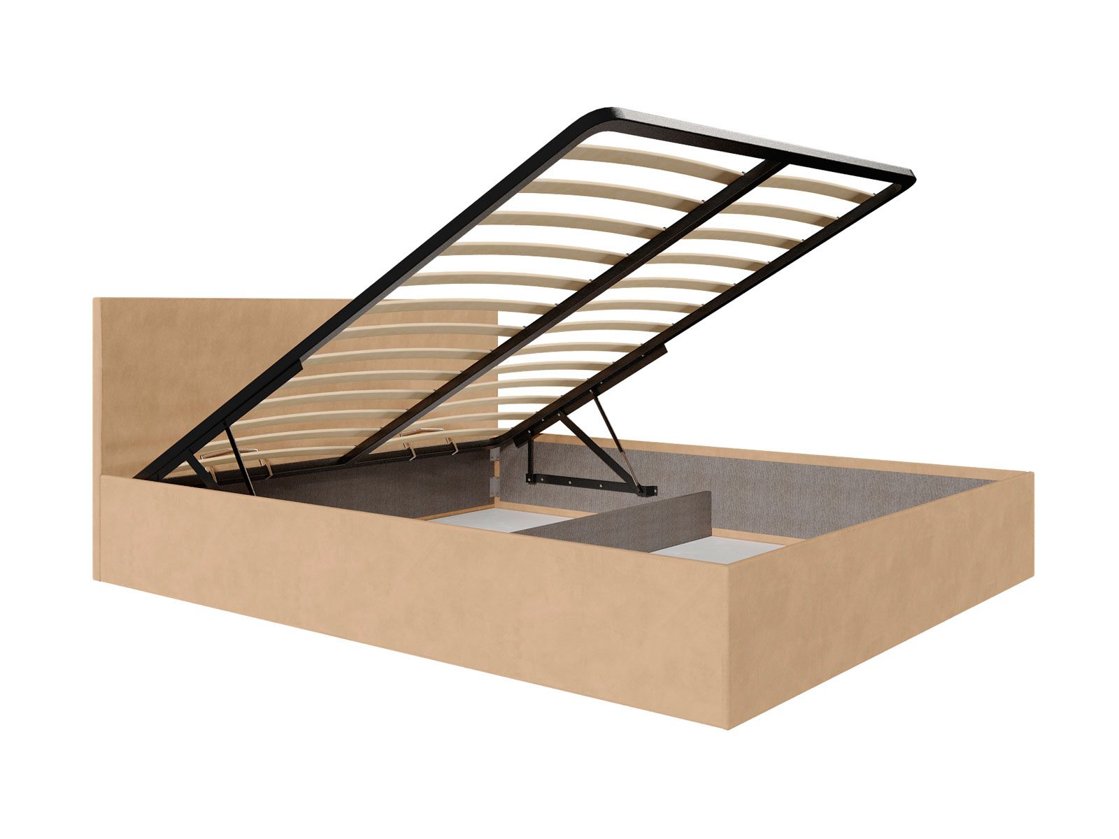 В комплектации с подъемным механизмом кровать имеет вместительный бельевой короб с двумя отделениями.