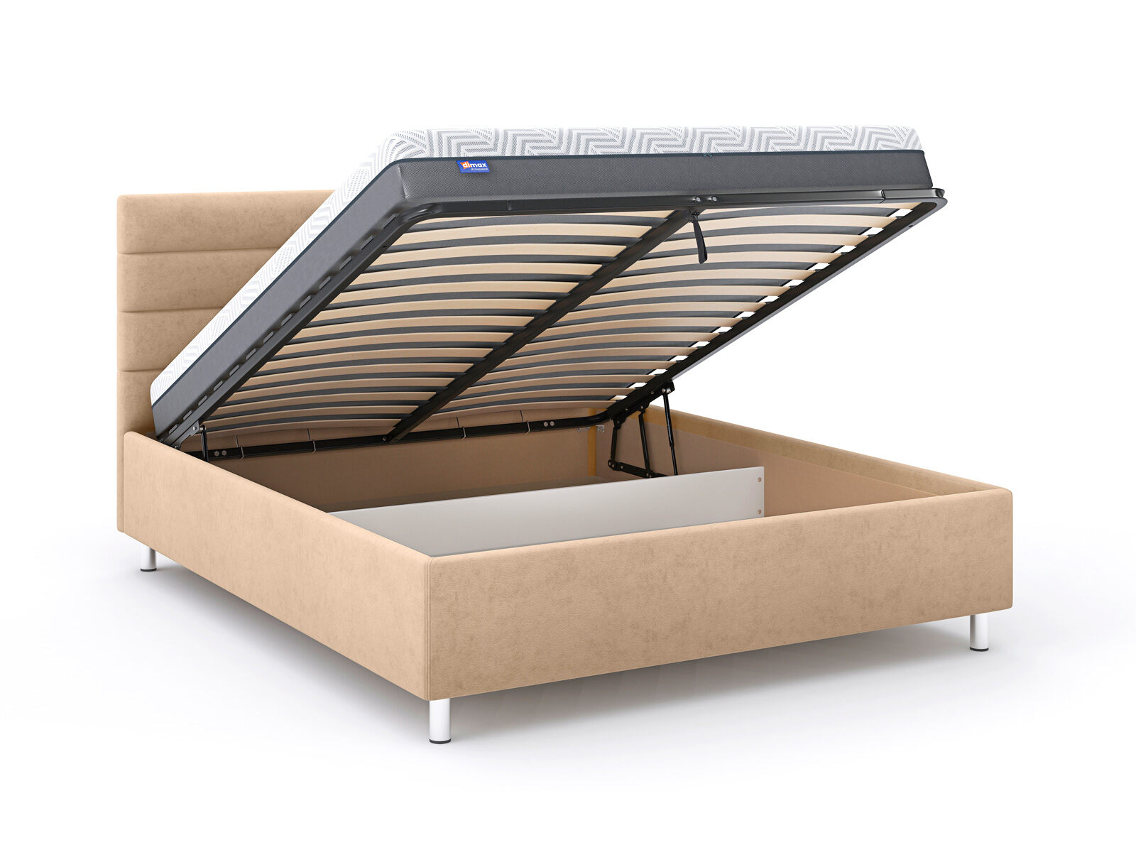 В комплектации с подъемным механизмом кровать имеет вместительный бельевой короб с двумя отделениями.
