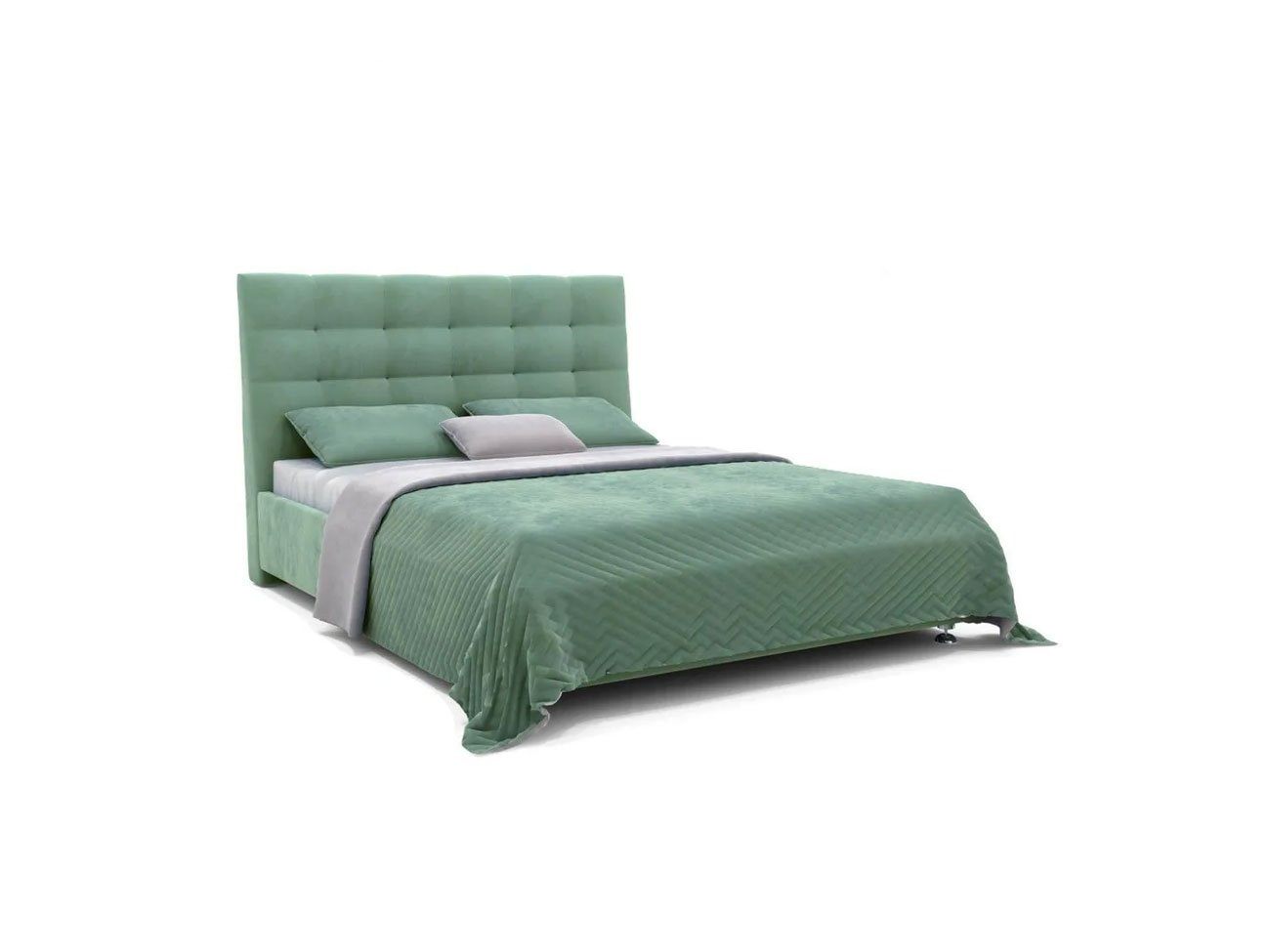 Современная модель среди интерьерных кроватей. Оригинальный рельеф изголовья, выполненный в виде квадратов с декоративной строчкой задает определенный ритм всему интерьеру спальни.