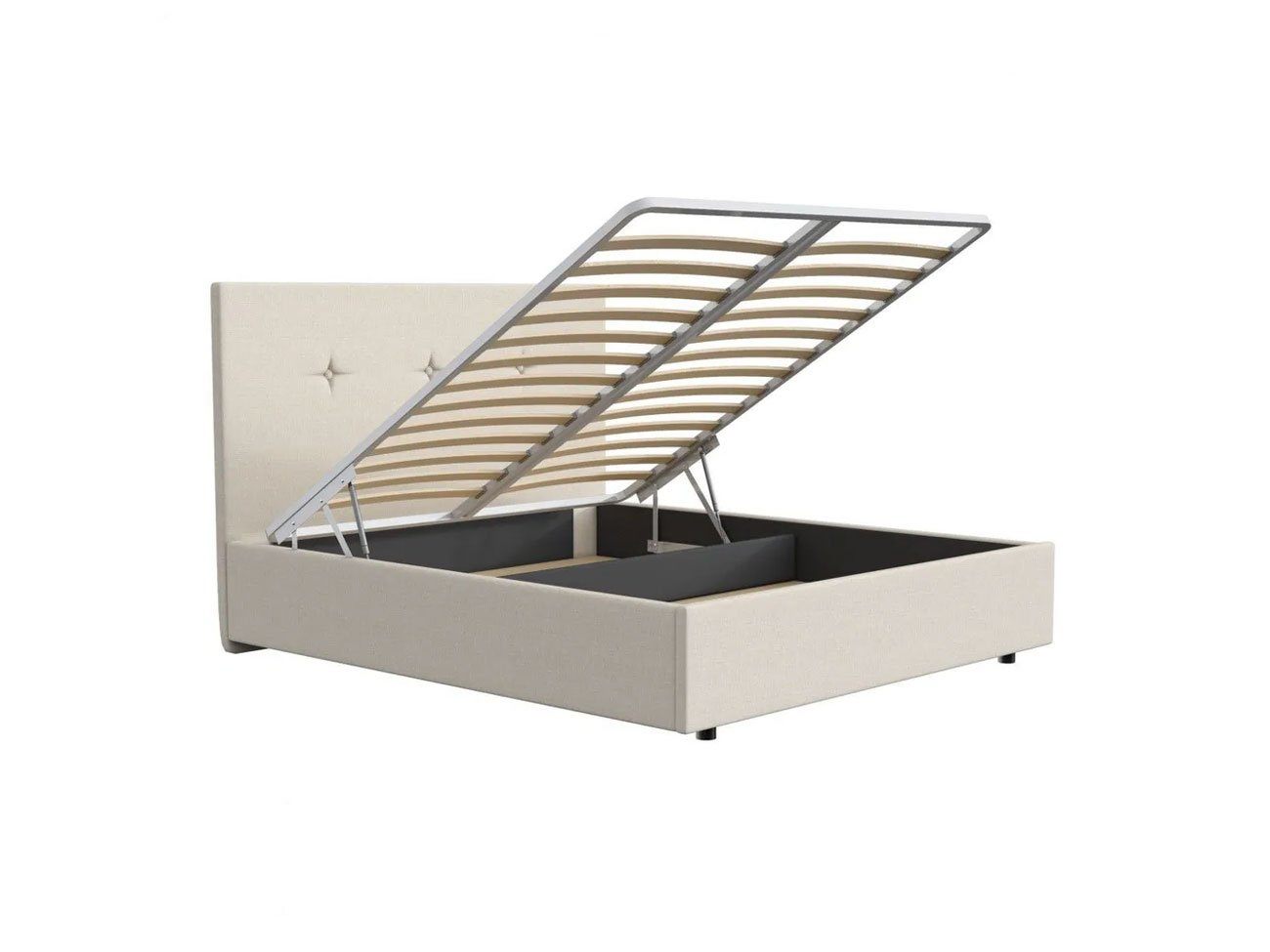 Кровать оснащена основанием с ламелями и подъемным механизмом. Рекомендуемая высота матраса до 30 см, вес матраса до 50 кг.