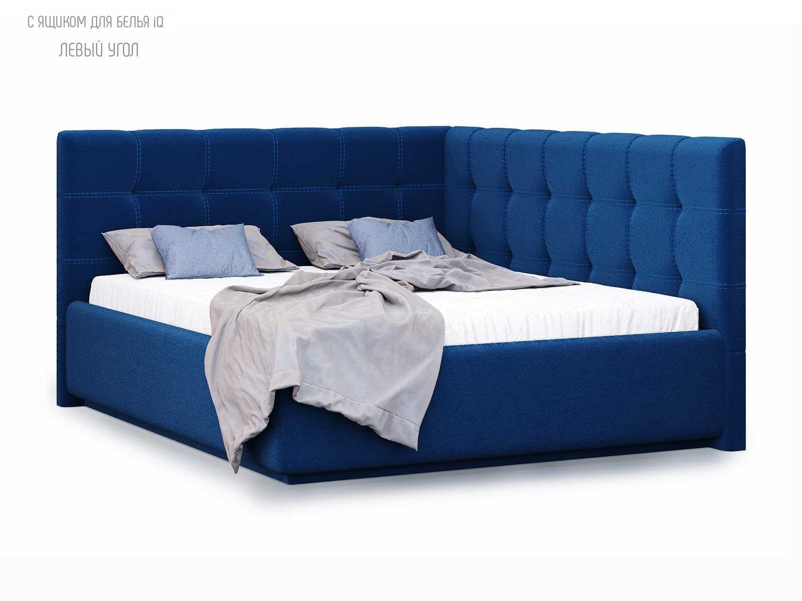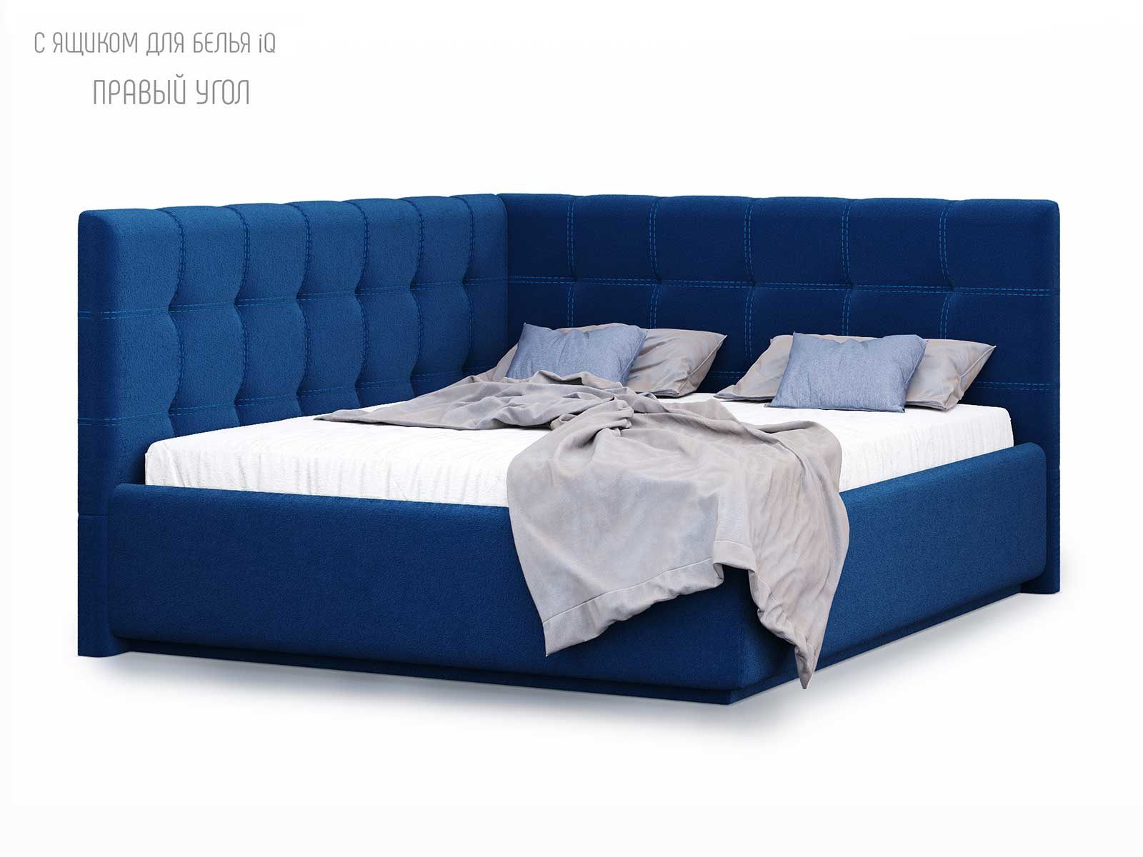 Кровать укомплектована IQ с подъемным механизмом и ящиком для белья без дна (дополнительная платная опция - дно к ящику IQ из HDF (ХДФ). Каркас кровати на цоколе, декоративный чехол на цоколе съёмный. Глубина ящика для белья - 30 см, без ограничения нагрузки на ящик.