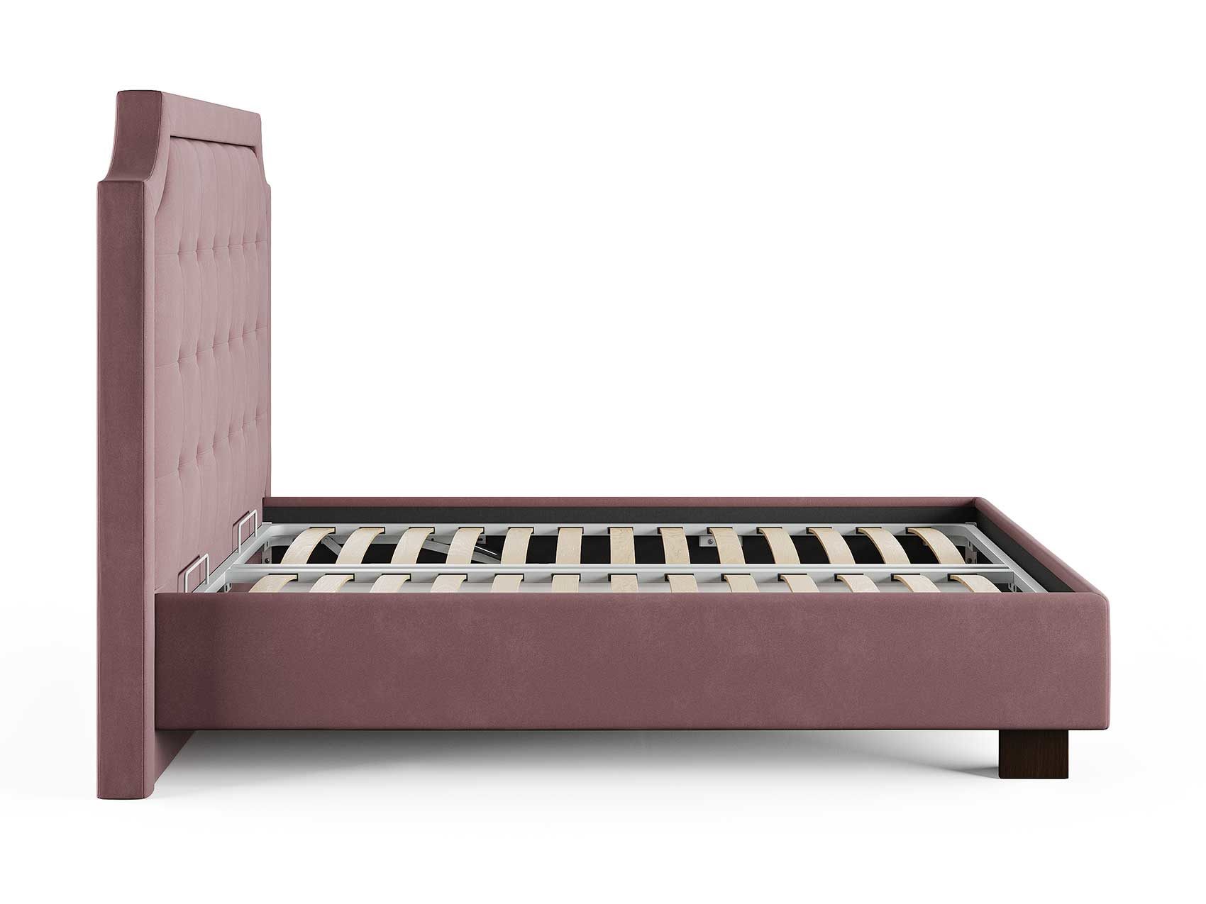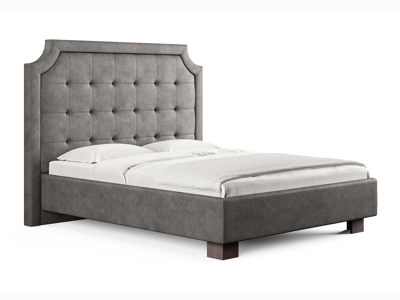 Кровать прекрасно впишется в интерьер от классики до современного стиля и cтанет отличным решением для просторной светлой спальни. Высокая спинка с мягкими утяжками и массивной рамкой выглядит эффектно. Задняя часть спинки кровати выполнена в основной ткани, благодаря этому ее можно установить в центре комнаты. Увеличенная прочность кровати достигается за счет металлического каркаса по периметру. Массивные ножки, выполнены из бука цвета венге. Расстояние от пола до царг способствует легкой уборке под кроватью, в том числе роботом – пылесосом.