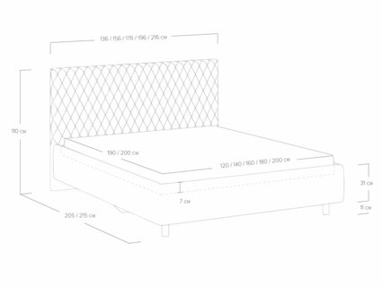 Прямую форму изголовья декорирует мягкий чехол. Чехол изголовья простеган ромбами среднего размера, что добавляет модели объем и подчеркивает выразительность. Кровать Stella лаконична, нейтральна, не берет на себя много внимания поэтому органично впишется в большинство современных интерьеров. Увеличенный просвет от пола позволяет облегчить уборку под кроватью, в том числе роботом–пылесосом. Царги кровати выполняются по технологии съемного чехла.