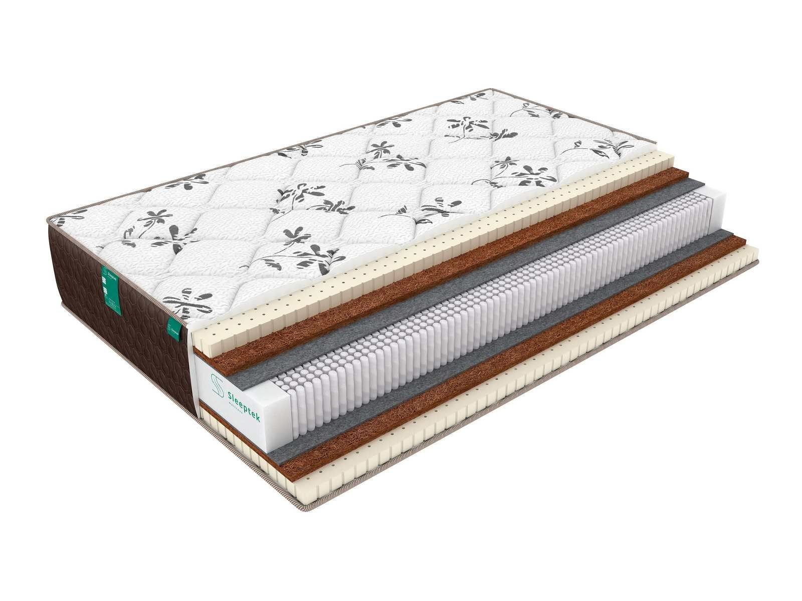 Оба использованных наполнителя экологически чисты и гипоаллергенны, хорошо вентилируются, быстро отводят влагу, не накапливают пыль и посторонние запахи. Между слоями наполнителей располагается блок независимых пружин S2000 с высокой плотностью пружин на квадратный метр. Индивидуальная реакция таких пружин на прилагаемое усилие обеспечивает точечную поддержку позвоночника и расслабление всех мышц. Блок пружин абсолютно бесшумен и не дает «эффект гамака», смягчая колебания.По обеим сторонам блока находятся слои термовойлока, защищающего наполнители от контакта с пружинами и продлевающего срок службы матраса.