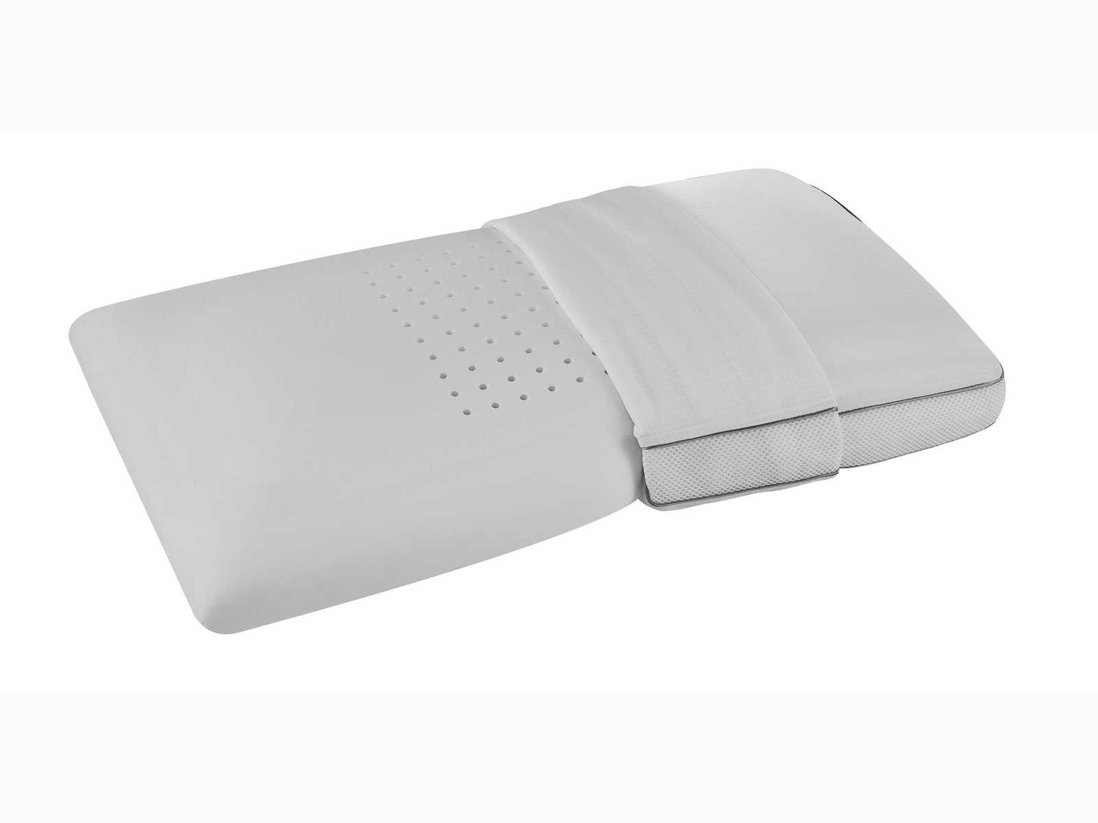 На подушку надет чехол с вшивной молнией. Его легко снимать для стирки или химчистки. Материалом наволочки послужила ткань Outlast. Данное волокно само по себе инновационно и изначально было разработано для скафандров космонавтов для защиты от сильных перепадов температур. Outlast способна к терморегуляции и, благодаря своим свойствам, дарит невероятный комфорт отдыхающему. На такой ткани прохладно в жаркий день и тепло зимой.