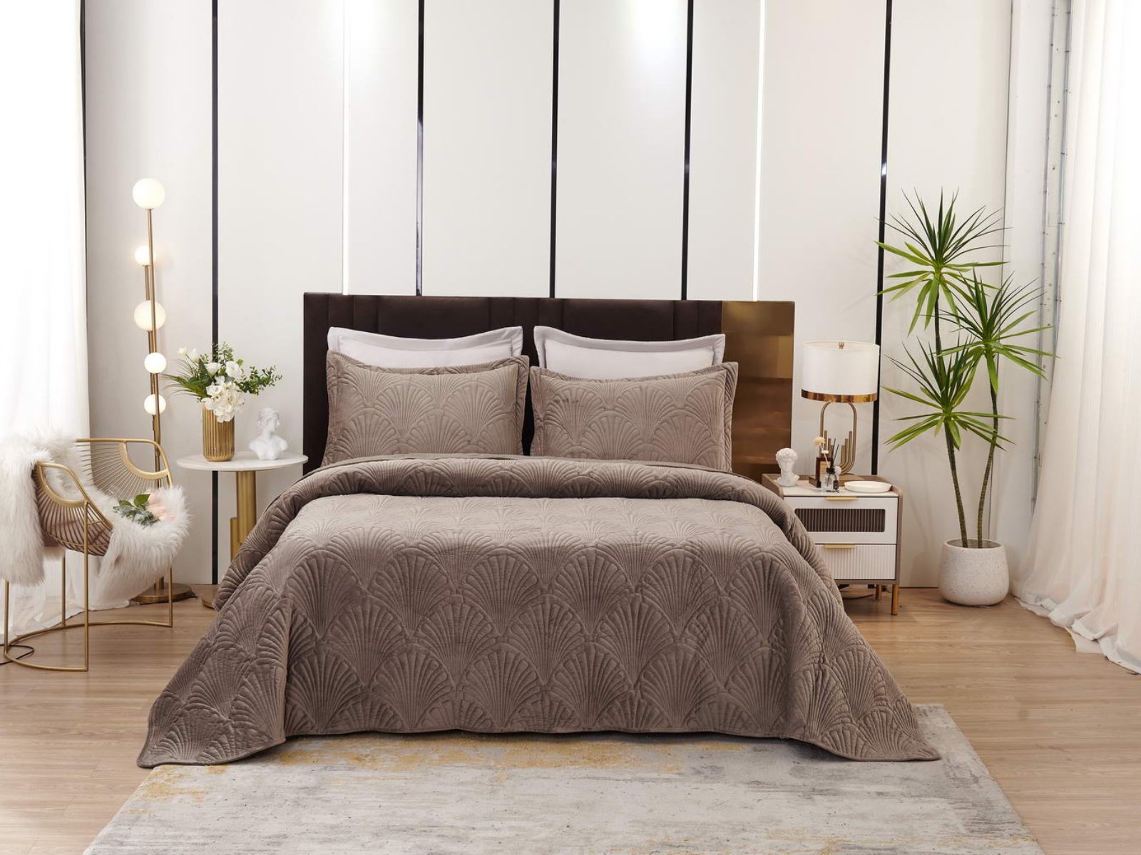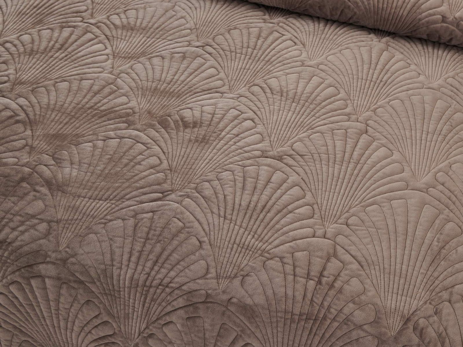 Роскошное велюровое покрывало Ариэль станет изюминкой любого интерьера, ведь оно потрясающе выглядит и приятное на ощупь. Обратите внимание на стежку покрывала – она выполнена в виде ракушек с эффектом 3D. Из-за особого плетения, велюровая ткань покрывала отражает свет и красиво переливается при различном освещении.