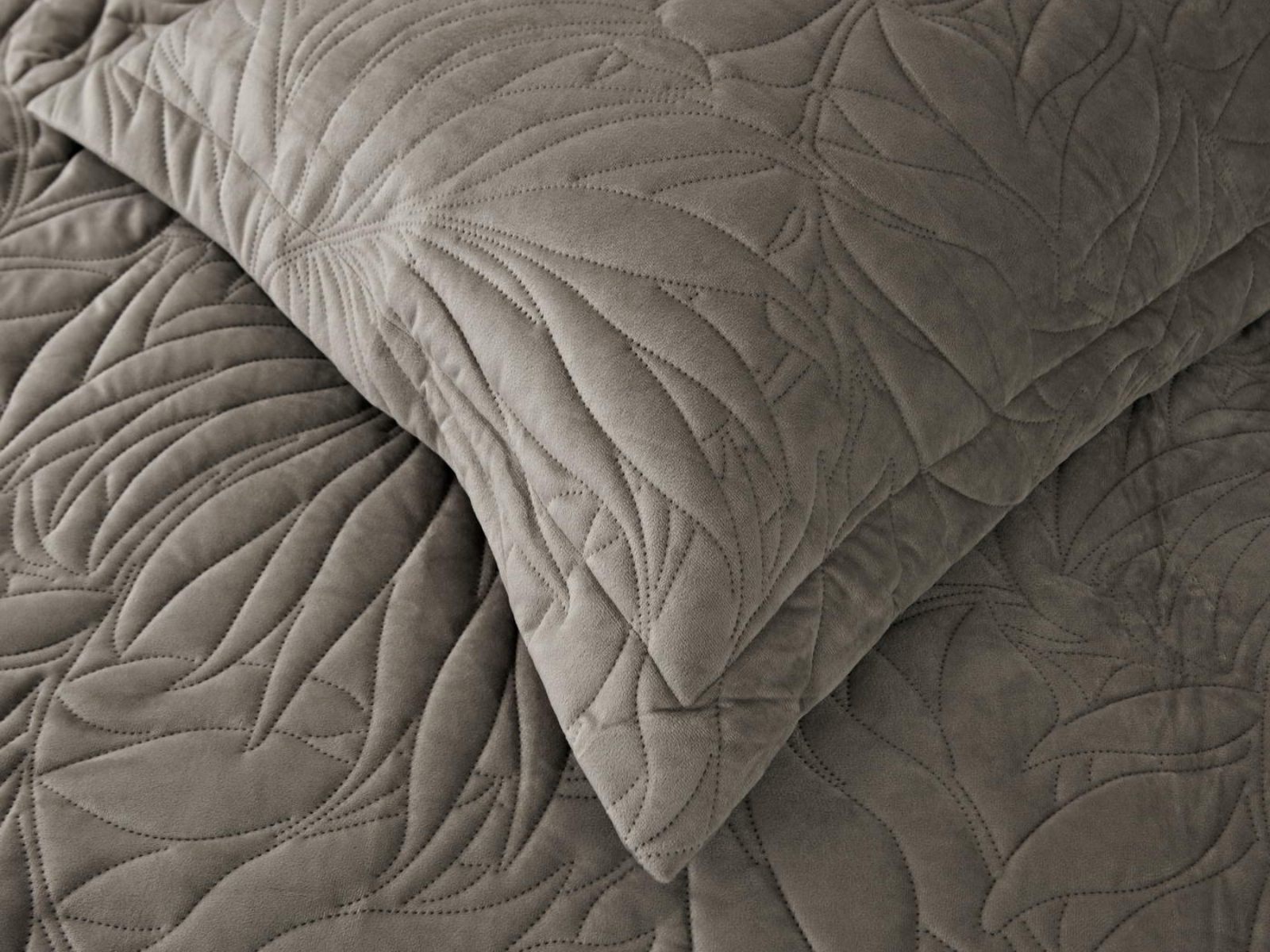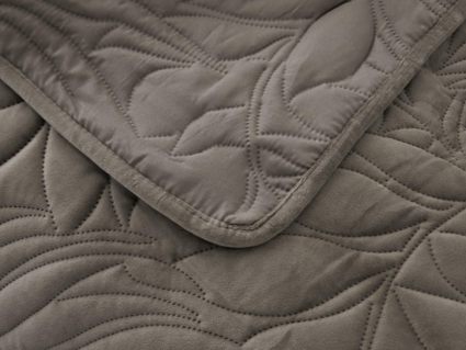 Стёганое покрывало Глория изготовлено из 100% вискозы, что делает его невероятно мягким и комфортным. Рисунок напоминает листья лавра. Такой орнамент подойдет большинству современных интерьеров.