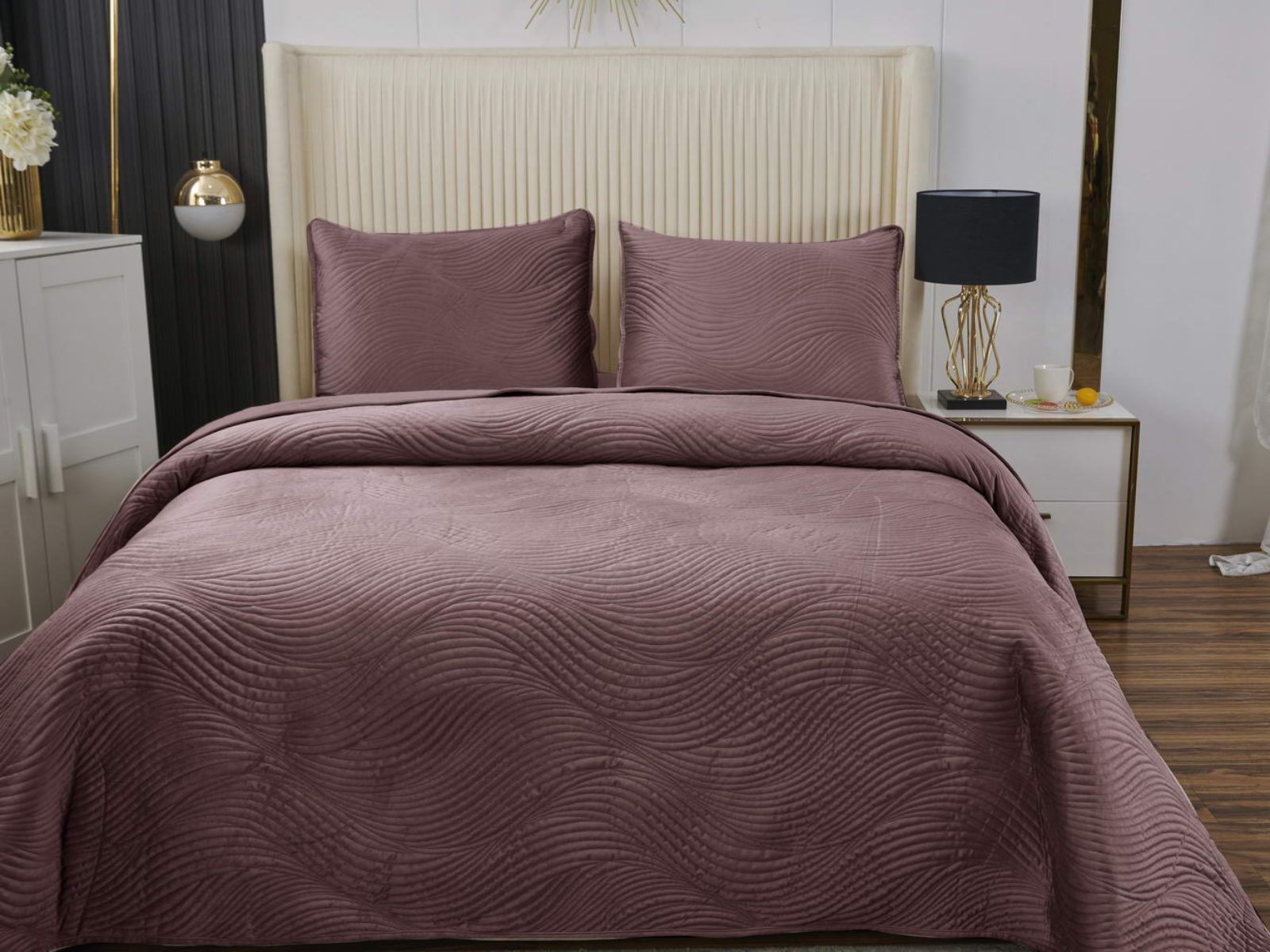 Традиционно в японском саду камней линии на песке символизируют отсутствие хаоса и спокойствие. Такой плавный узор напоминает размеренные потоки воды, которые оказывают на психику благоприятный эффект. Изящное покрывало Жизель с рисунком в виде подобных линий поможет обрести умиротворение, ведь в современном мире так важно уметь привести мысли в порядок. Помимо положительного воздействия на нервную систему, рисунок в виде волны придаст изысканности и утонченности Вашему интерьеру.