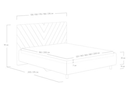 Кровать с мягким стеганым изголовьем, украшенная элегантными геометрическими линиями, придаст изысканность и уют спальному месту. Отлично впишется в большинство современных интерьеров. Увеличенный просвет от пола позволяет облегчить уборку под кроватью, в том числе роботом–пылесосом. Царги кровати выполняются по технологии съемного чехла. При необходимости кровать может быть укомплектована трансформируемым основанием Aquarius.