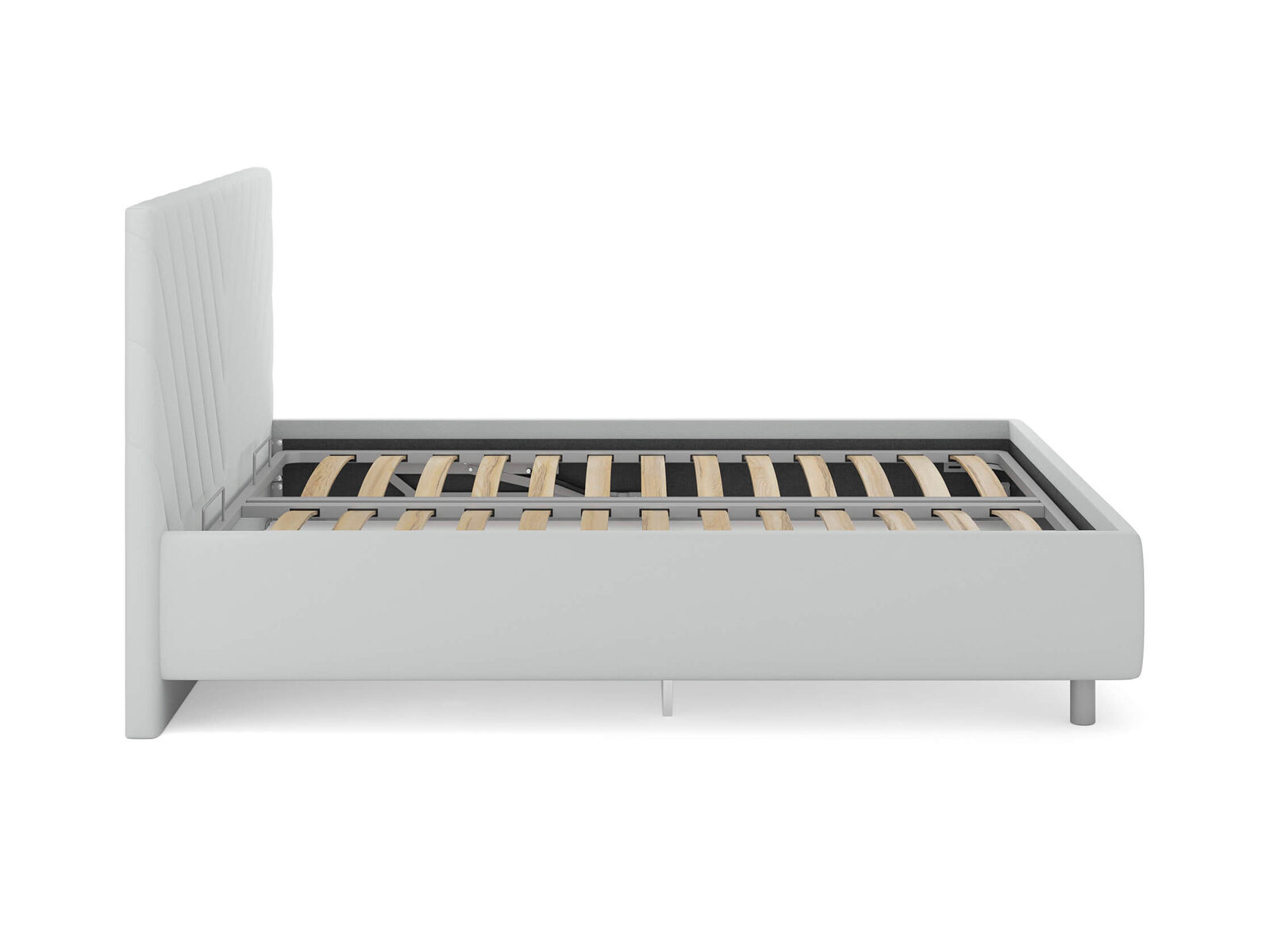 Кровать комплектуется металлическим основанием и подъемным механизмом со вместительным бельевым ящиком. Дно бельевого ящика легко сдвигается для обеспечения уборки под кроватью.